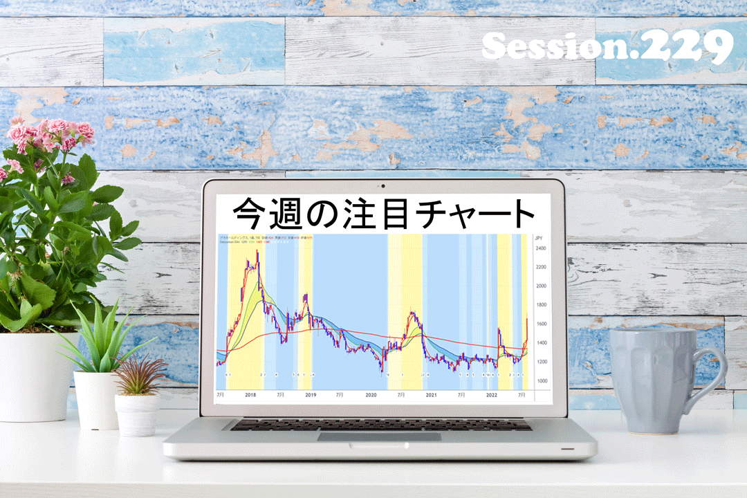 安定上昇している銘柄は、200週EMAは緩やかに右肩上がりの動きとなります。