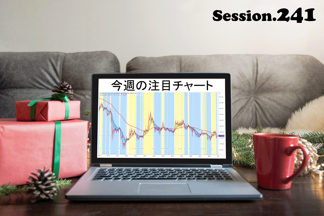 200週EMAは右肩下がりから横ばいになり再び緩やかに右肩下がりの動きです。