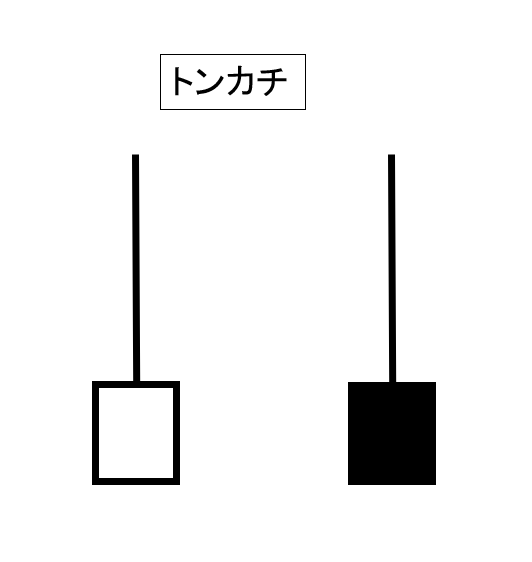 陰線のトンカチは高値圏で出た時には反落を示唆し、安値圏で出た場合は先安感に変化が出る。