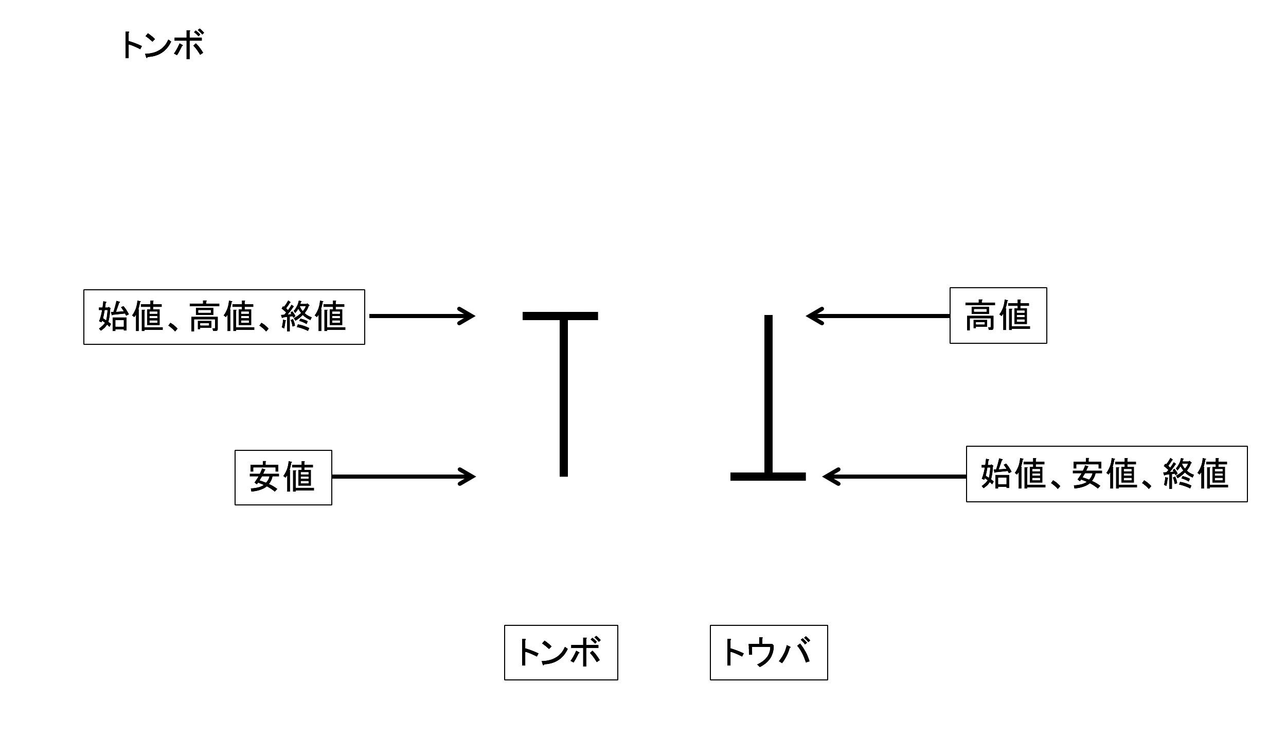 トンボローソク足の形。始値、終値は近い水準にも関わらず安値が大きく下の水準にあり、下ヒゲが大きくついている状態。 この記事を読んだ方には次の記事もオススメです! 用語解説17 「トウバ・トンボ」 動画でトウバ・トンボについて解説しています!
