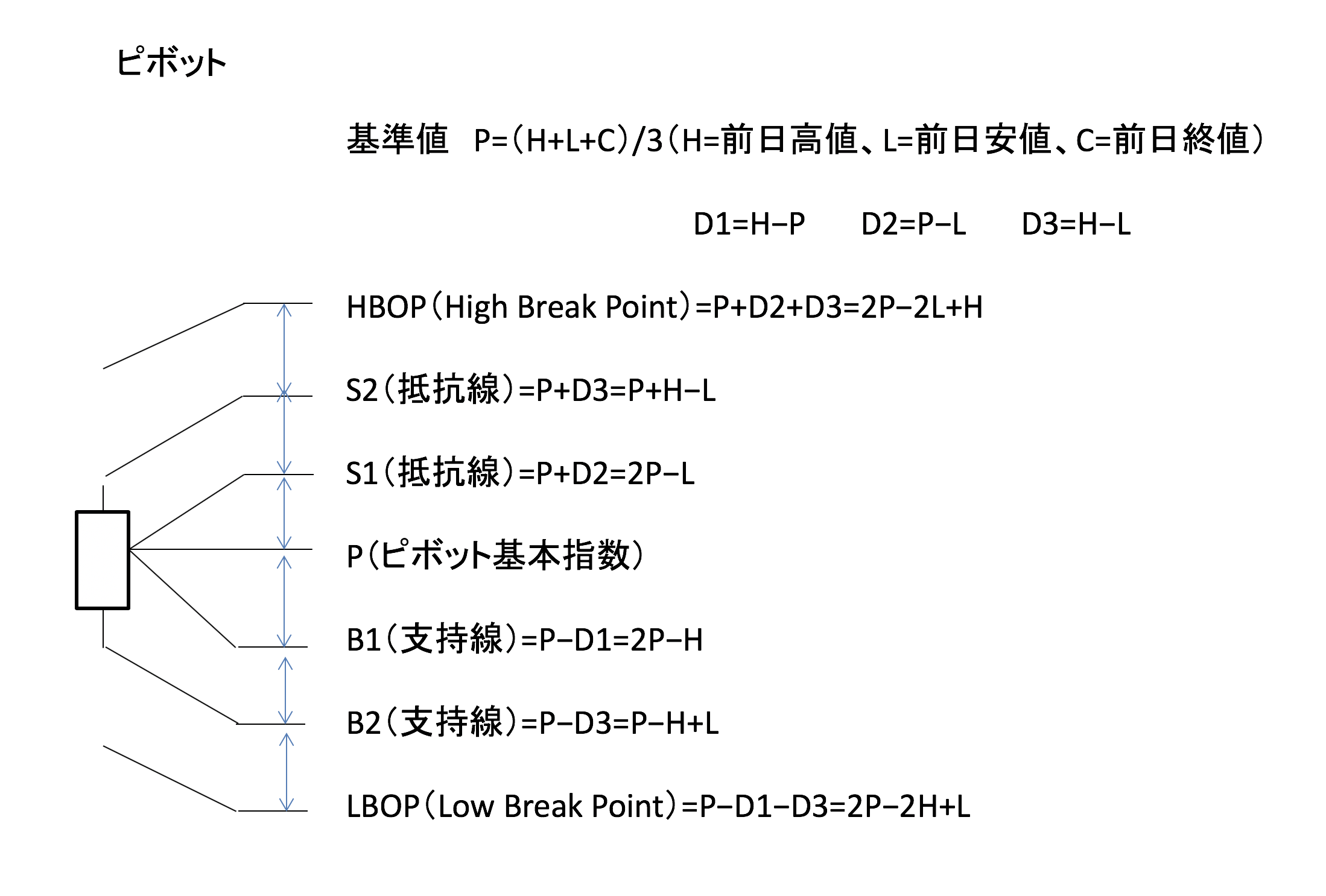 チャート上に当日のサポートライン(支持線)やレジスタンスライン(抵抗線)を表示するテクニカル指標。