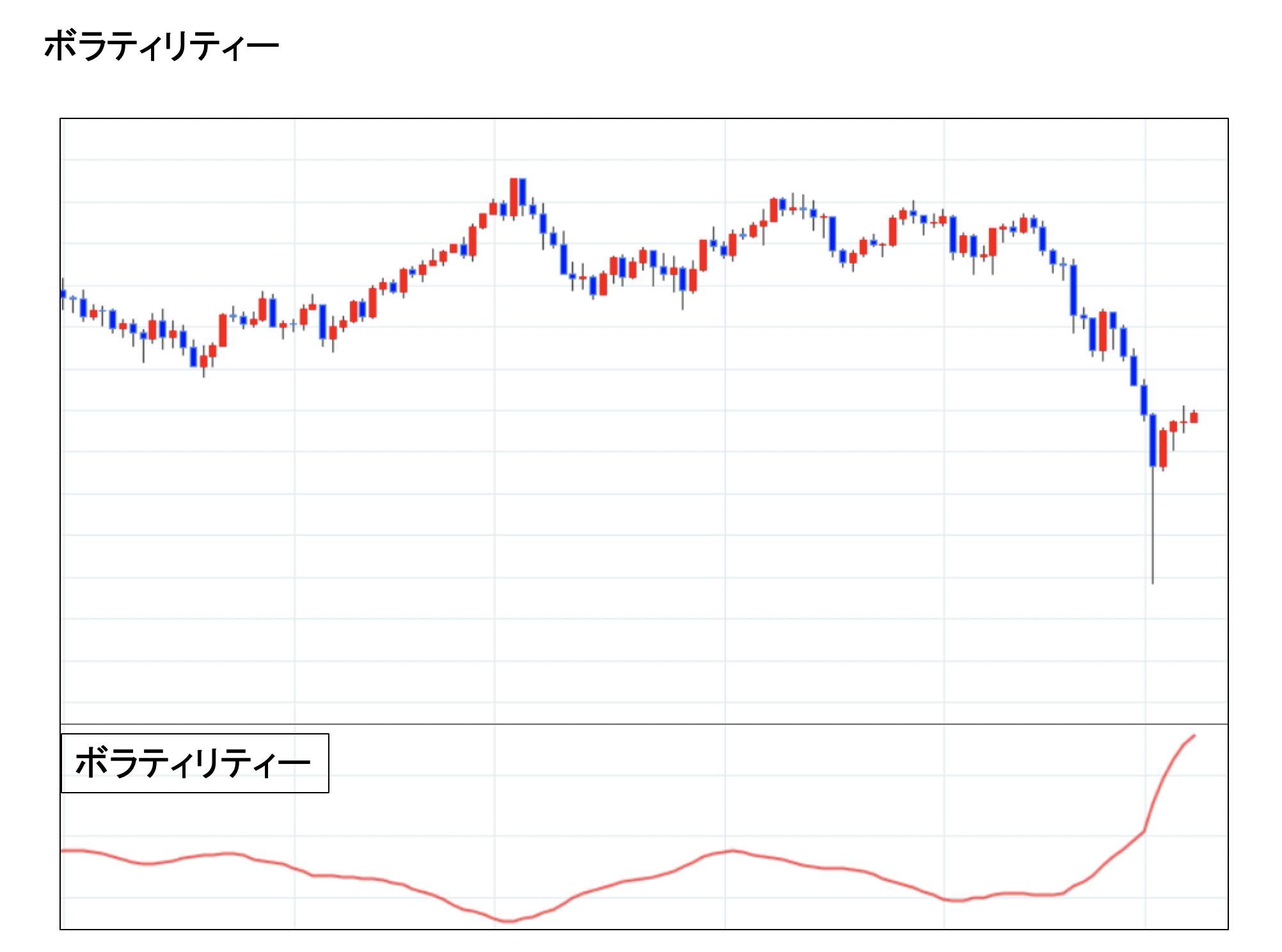 (変動率)相場における価格の変動幅の度合い。ボラティリティーが大きくなるほど価格変動の幅が大きく、小さいほど価格変動幅は小さくなる。