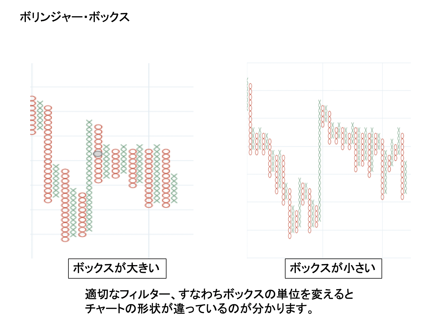 ポイント・アンド・フィギュア・チャートのボックスの適切な単位を連続的に定める方法。