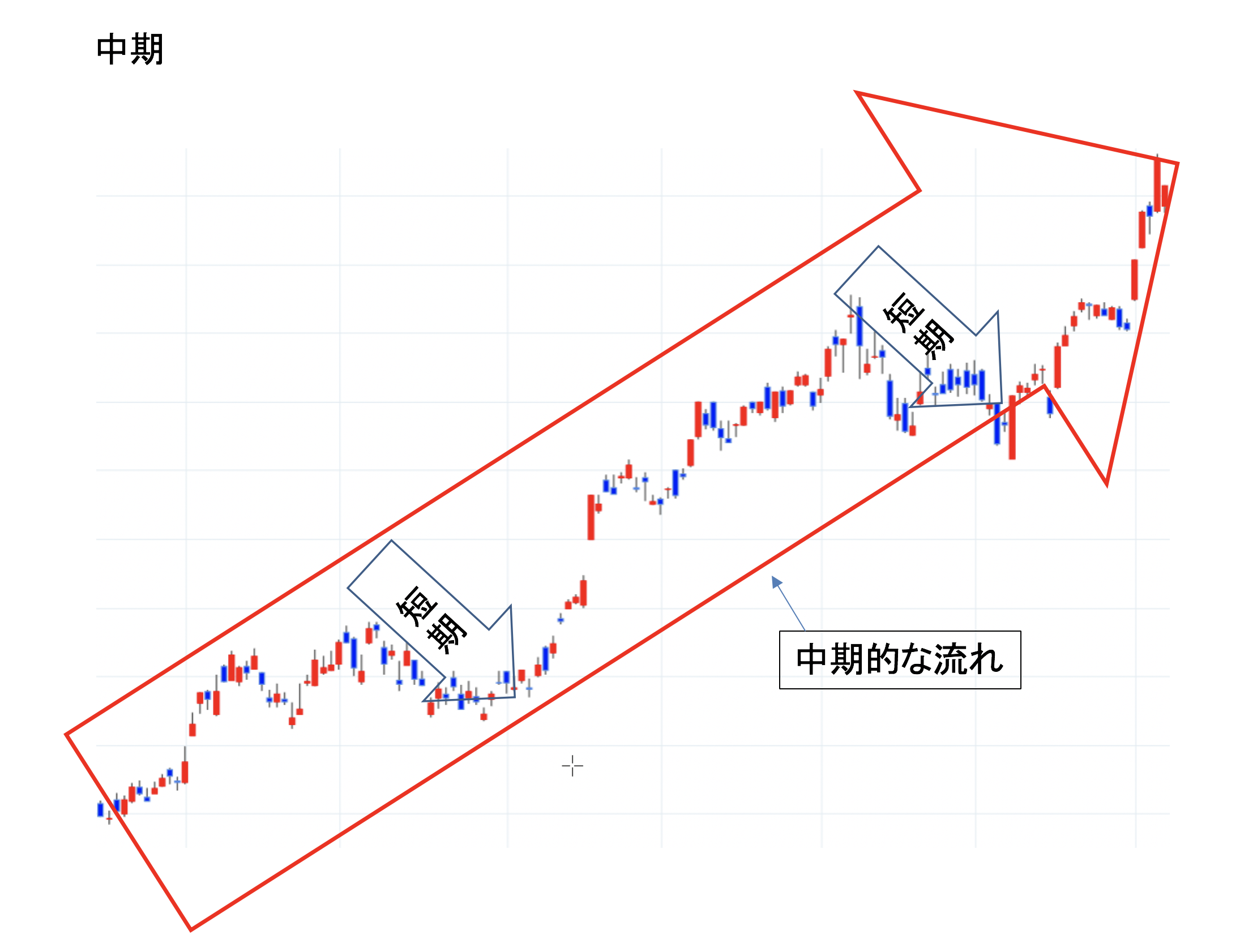 重要性が中程度のマーケットの動きを伝える時間枠。大きなベアマーケットやブルマーケットの間の修正、あるいはベアやブルマーケットの中での個別の局面がその好例である。