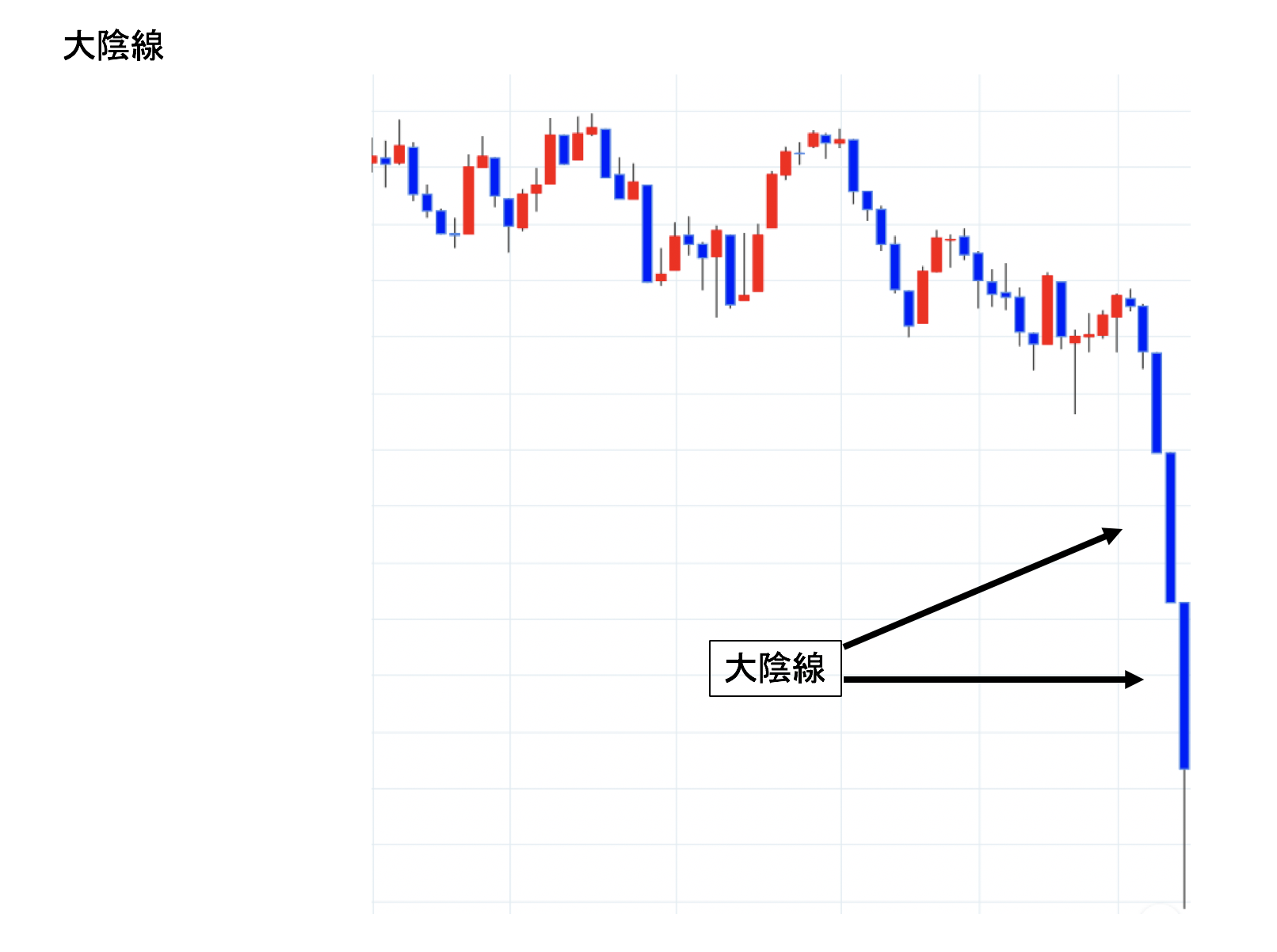 ローソク足において大きく長い陰線のこと。