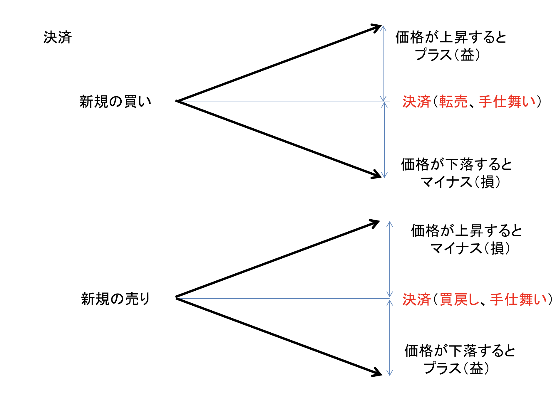 手仕舞い。持ち高、保有銘柄、建玉などを清算すること。