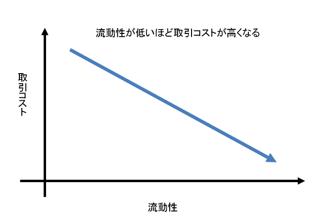 換金、もしくは現金化の容易さを表す。本質的には、取引の可能性。流動性が高ければ高いほど、取引が容易になる。流動性が低いほど取引コストが高くなる。