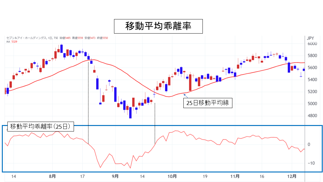 計算式:{(当日の終値―移動平均線)÷移動平均線}×100
