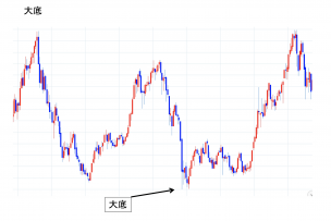 遡って長期の値動きを見た場合に幾つかの安い価格があるが、その中で一番低い底のところ。陰の極。