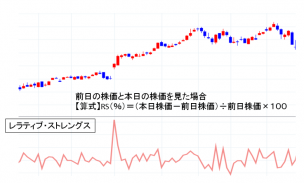 移動平均線を用いたモメンタム投資法。過去一定期間の株価における上昇・下降分の割合です。ある銘柄がある指数または一定の株式の集合に対して、どういう関係にあるかを示すもの。最も簡単なレラティブ・ストレングス線は、ある銘柄の株 ・・・