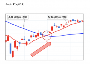 テクニカル分析において、短期の移動平均線が長期の移動平均線を下から上に突きぬけてクロスした状態をいう。