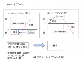 ある銘柄を一定期間内に、一定価格で買う権利をその持主に与えるオプション。これは権利であるが義務ではない。