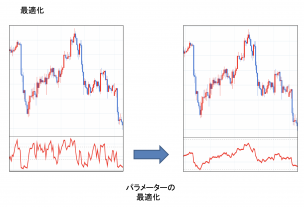 トレーディングを行うためのシステム結果が最もよくなるためのパラメーターを探す過程。