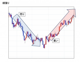 相場の上昇時は「買い」、下降時は「売り」と相場の方向性に沿った取引。