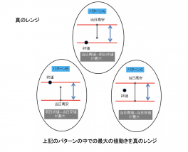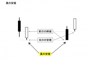 真の高値から真の安値を引いたもので、True range(トゥルーレンジ)