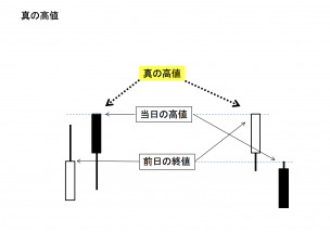 今日の高値か、前日の終値のどちらか高い値段。