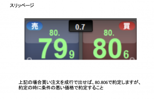 注文した価格と実際に約定された価格の差のこと。目標達成上の大きな障害となる。