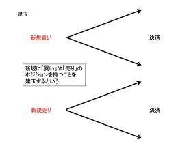 反対売買されていない未決済の取引。ポジション(持ち高、保有高、未決済建玉)とも言う。