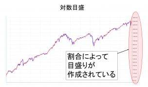 ログスケールともいう。 チャートの価格の目盛りの幅を均等ではなく、割合に応じた幅で表示する方法。 例えば、1,000円の株価が10%動くと100円ですが、10,000円の株価の場合は同じ10%でも1,000円の変動になり ・・・