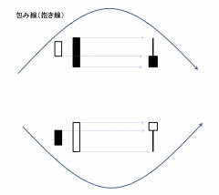 (抱き線)前日の陰線、もしくは陽線を、当日のローソク足の値幅で完全に包む大陽線または大陰線のローソク足の組み合わせ。 この記事を読んだ方には次の記事もオススメです!