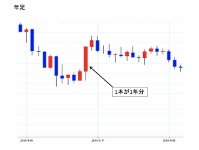 チャートを作成する時に、1年の相場を1本として引く線のこと。