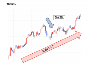 (押しと売り)主要なトレンドと反対の価格の動き。ただし、トレンド転換となるほどの動きではない。