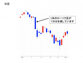 チャートを作成する時に、1日の相場を1本として引く線のこと。