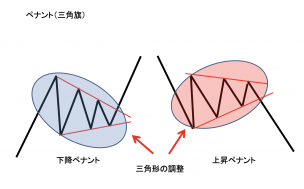 価格下落の後の比較的狭いレンジで証券が取引される時期で、通常は反騰の前触れである。