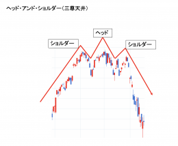 (三尊天井、トリプルトップ)チャート(グラフ)において三つの山を形成する天井圏で出てきやすい動き。人の上半身のように頭を中心として左右に肩が並ぶ形でネックラインを持つテクニカルチャートのフォーメーション。出来高のパターン ・・・