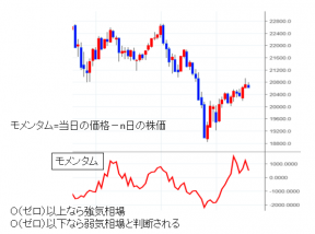 相場の強弱を測るテクニカル分析の指標。一定期間の価格変化で、通常ポイント数またはパーセントで表示。