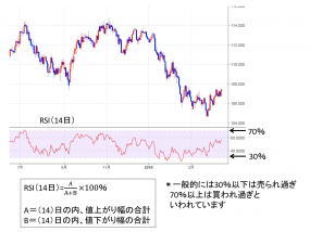 RSI 2018.01.05 「レラティブ・ストレングス・インデックス」ウェルズ・ワイルダーが考案した指標。相対力指数。オシレーター系テクニカル分析の一つ。レート変動から買われ過ぎ、売られ過ぎの状況を読み取るもの。値上がりした日の銘柄の価格の動きと、 ・・・