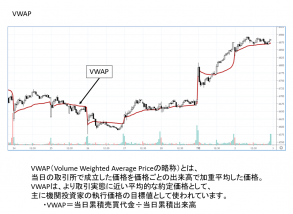 VWAP 2019.07.02 VWAPとは、売買高加重平均価格(Volume Weighted Average Priceの略称)のこと。 当日の取引所で成立した価格を価格ごとの売買高(出来高)で加重平均したもの。 VWAPは、平均的な約定価格として ・・・